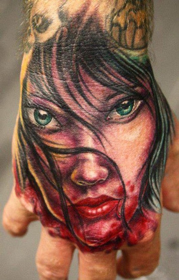 手背现代风格的血腥吸血鬼纹身图案