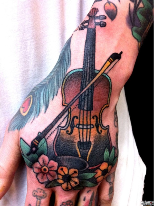 手背小提琴纹身图案