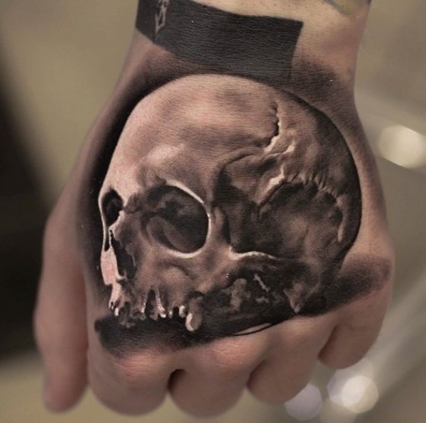 手部真正的照片损坏的骷髅头纹身图案