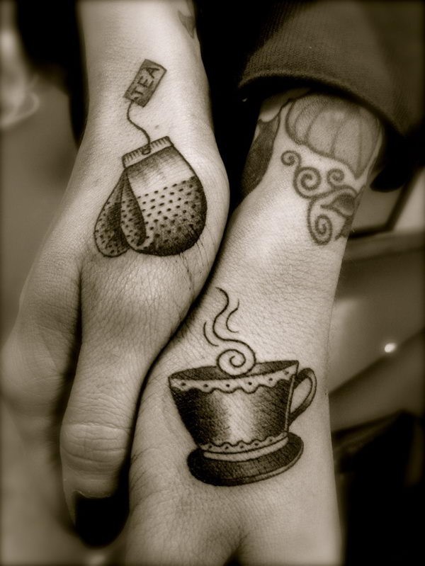 手部灰色一杯茶与手套纹身图案