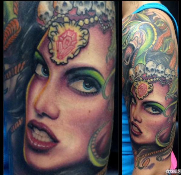 复古卡通红唇美女手臂纹身_卡通纹身图案大全_纹身图吧