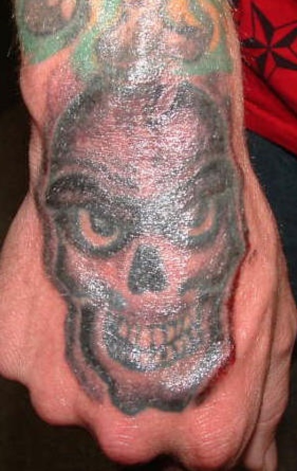 手部彩色可怕的光头怪物纹身