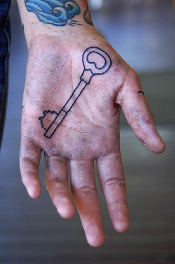 男性手部简约钥匙纹身图案