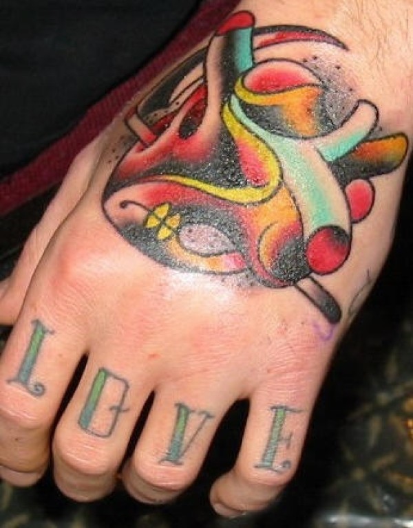 手部彩色心脏血管纹身图案