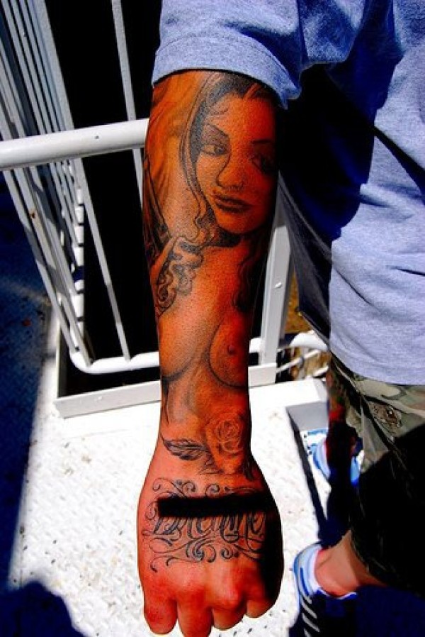 手臂灰色裸体诱惑女孩纹身图案