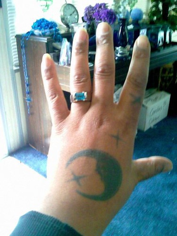 手部黑色精确的月亮和星星纹身