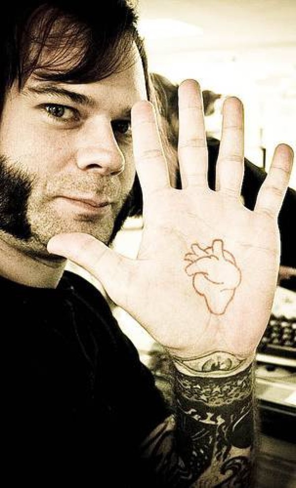 男性手部黑色简约心脏纹身图案