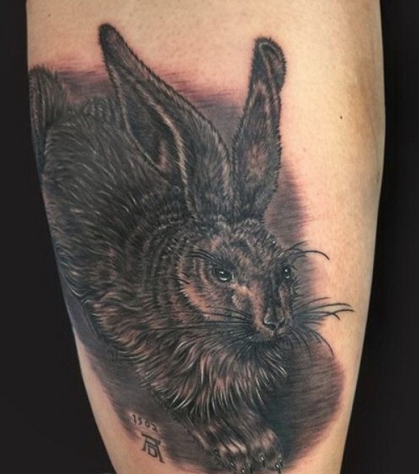腿部逼真的黑色毛茸茸兔子纹身图案