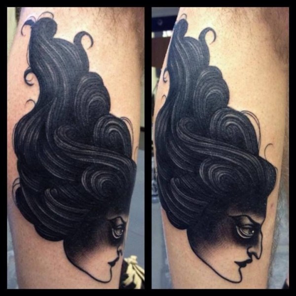 手臂另类风格的女人头纹身图案