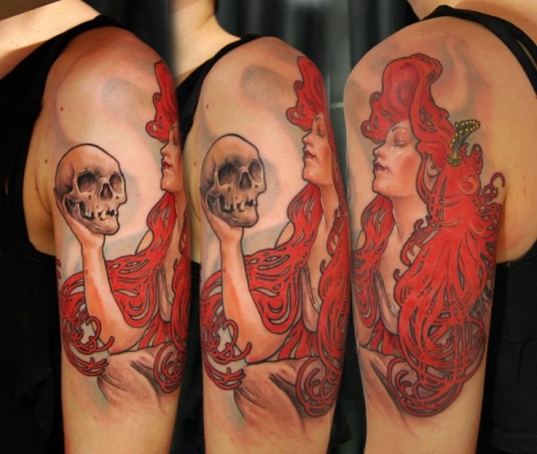 肩部全新学校风格的红头妇女纹身图案