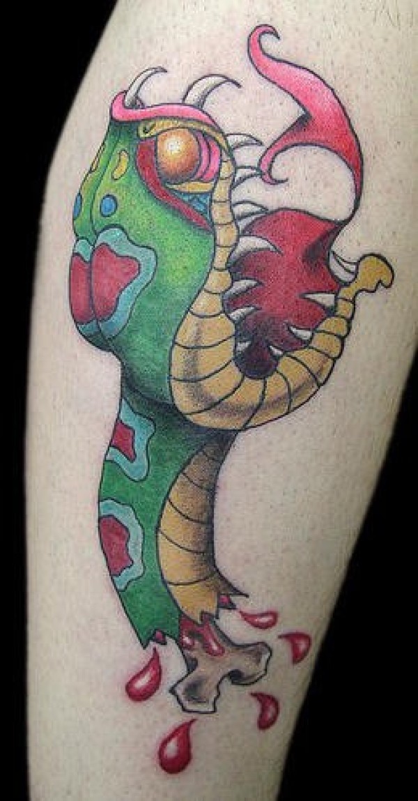 手臂彩色卡通蛇头传统纹身图案