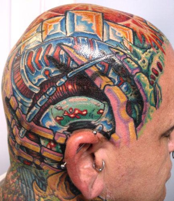 男性头部彩色生物力学杂色纹身图片