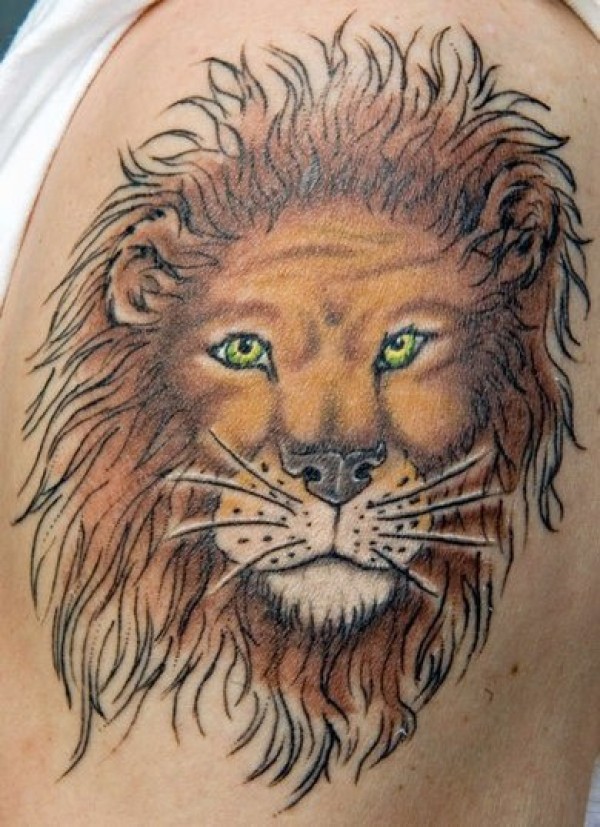 肩部彩色狮子头纹身图案
