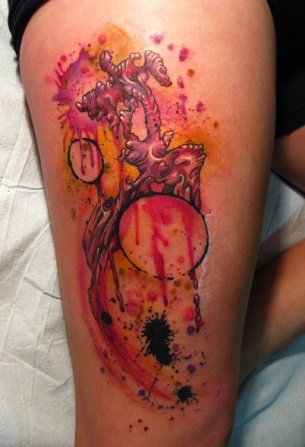 腿部令人毛骨悚然的血淋淋心脏纹身