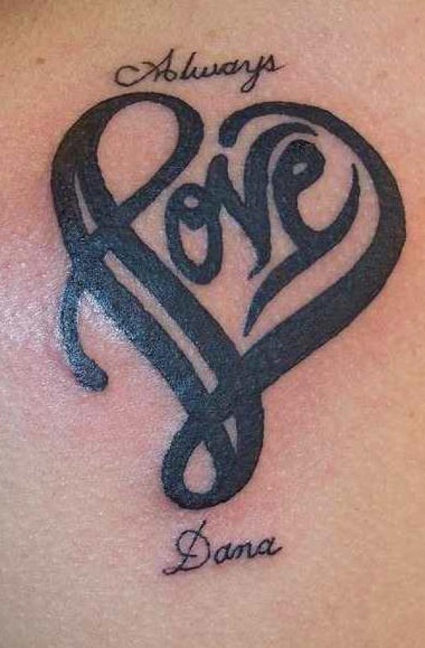 背部黑色心形爱图腾纹身图片