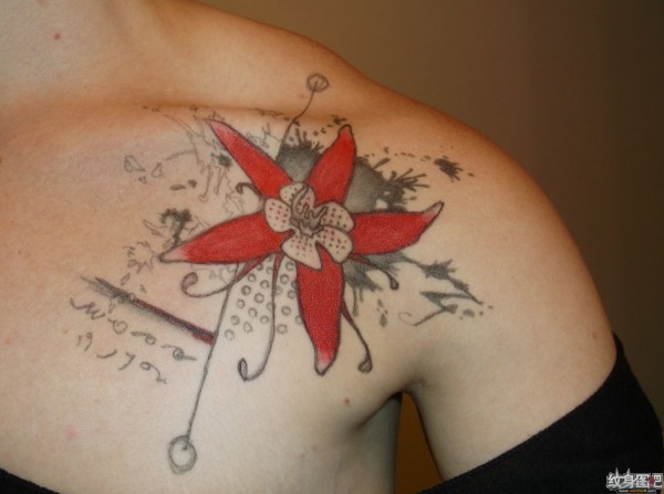 后肩唯美花藤英文图案图片_植物纹身图案大全_纹身图吧