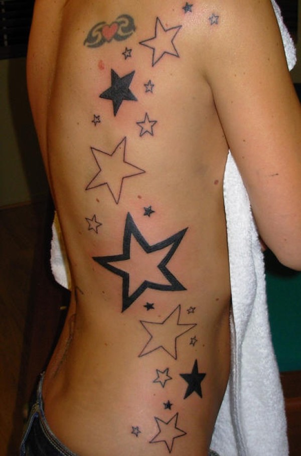 腰侧简约黑白五角星纹身图案