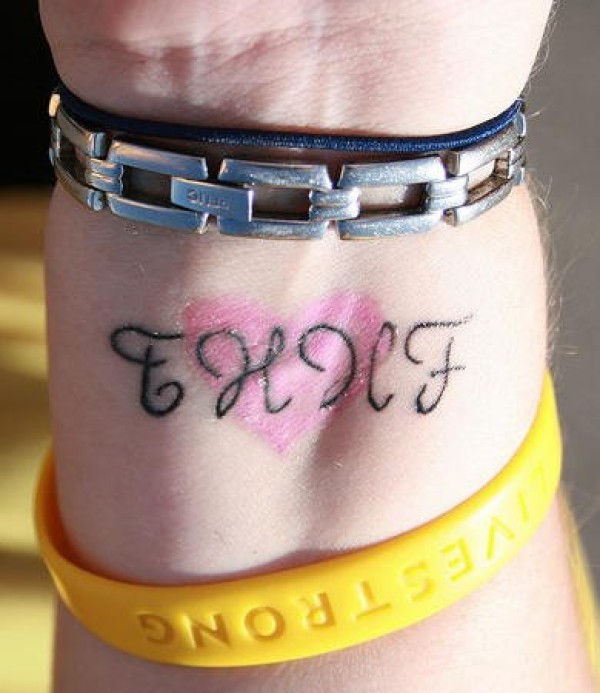手腕彩色爱心字符纹身图案