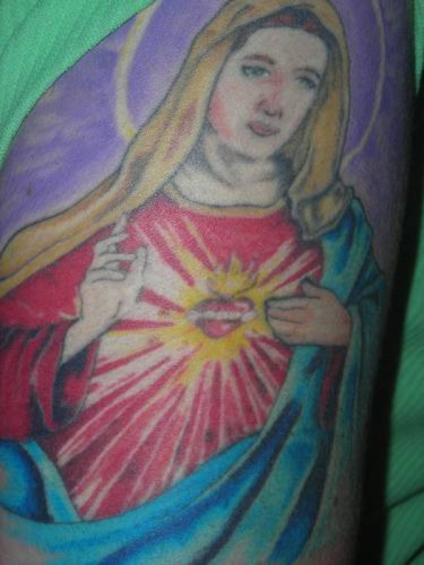 肩部彩色圣人心形纹身图片