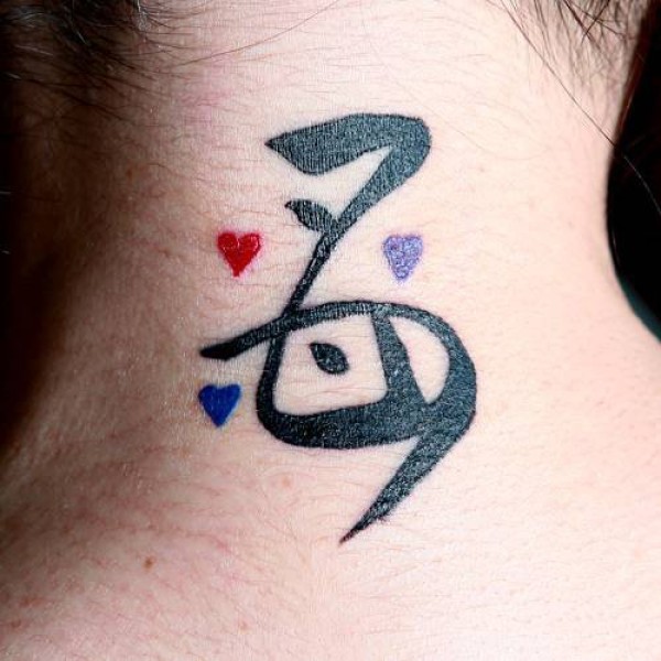 脖子上有一些象征心形符号纹身
