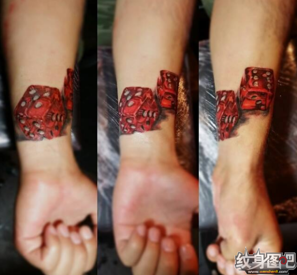 手腕上纹了两颗红色的色子