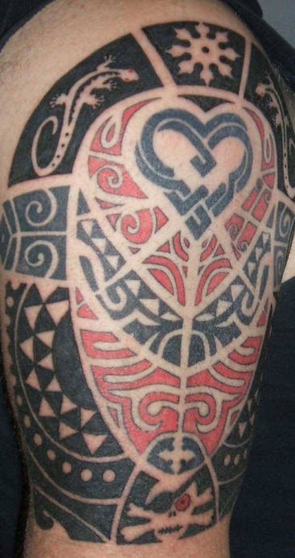 肩部彩色海盗部落图腾纹身图片