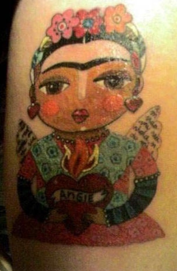 肩部彩色卡通弗里达神圣的心纹身