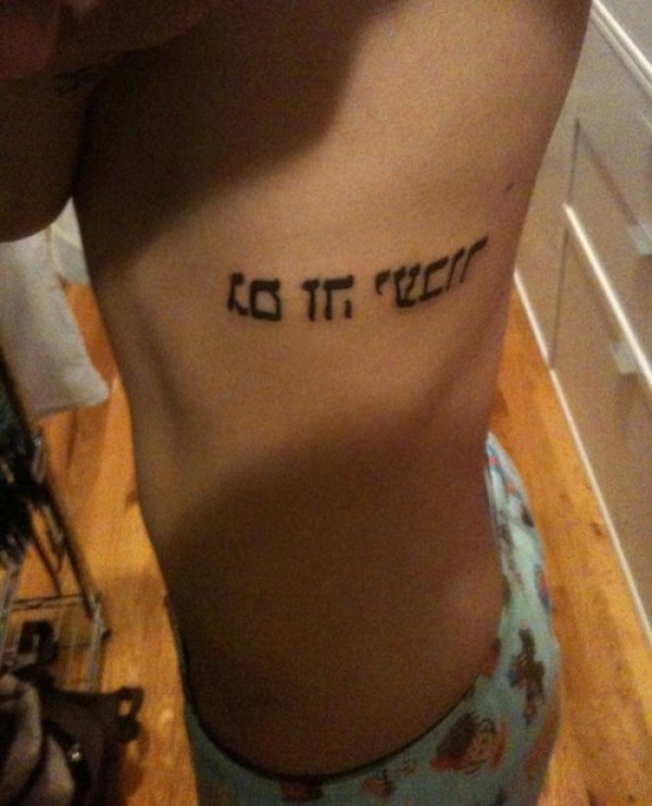 肋骨上的水平希伯来字符纹身图片