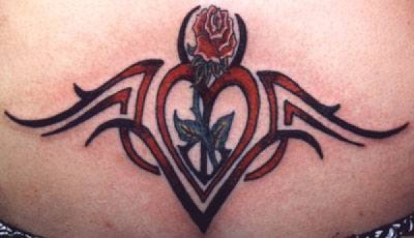 腹部彩色部落标志爱心纹身图案