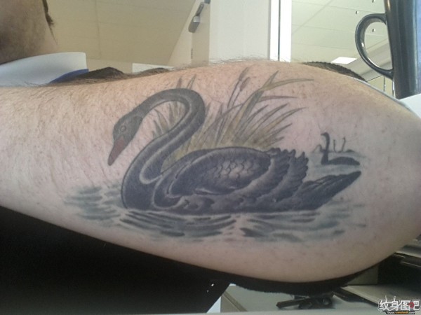 肘部黑天鹅纹身图案