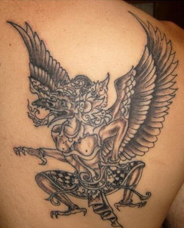 肩部黑灰印度教神纹身图案