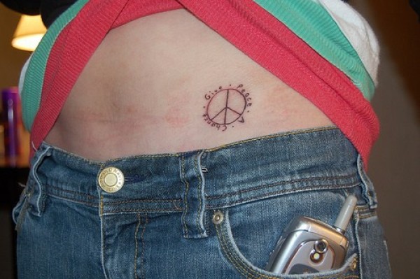 腰侧简约圆形小标志纹身图片