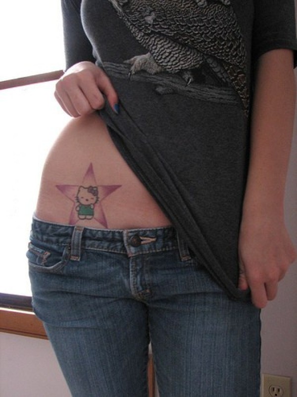 腰部彩色五角星和凯蒂猫纹身图片