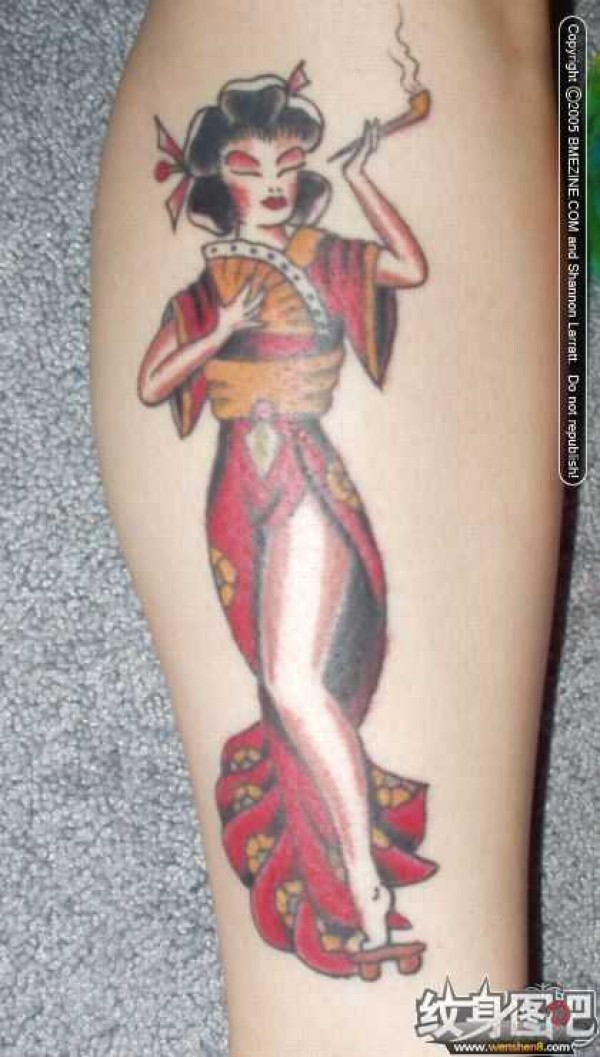 小腿艺妓纹身图案