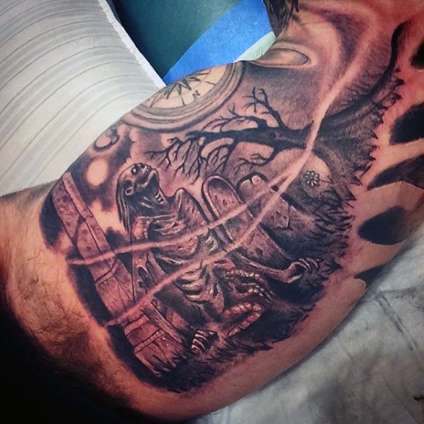 手臂神秘墓地僵尸纹身图案