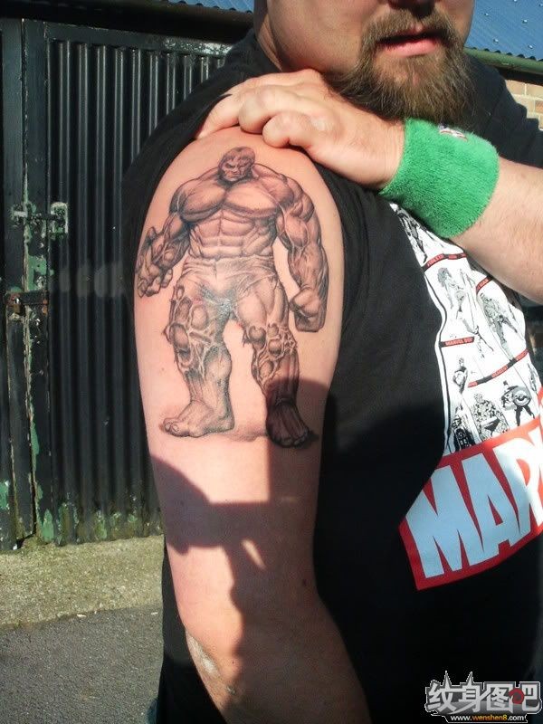 大臂上强壮的绿巨人纹身图案