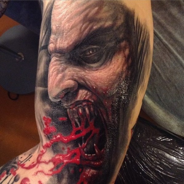 腿部彩色恐怖风格的恶心吸血鬼纹身