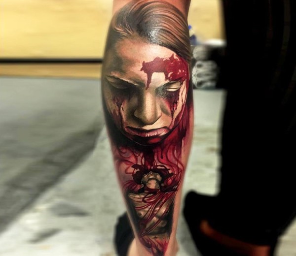 手臂毛骨悚然的恐怖风格血腥女人肖像纹身