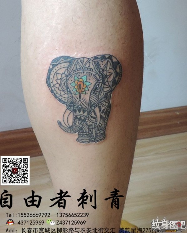 小腿上一款大象纹身图案_腿部纹身图案大全_纹身图吧