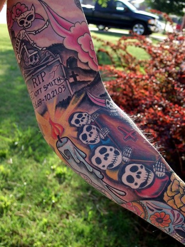 花臂恐怖漫画令人毛骨悚然的墓地纹身