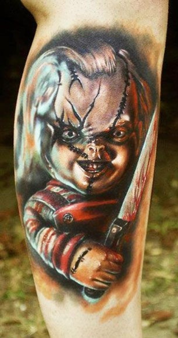 腿部彩色恐怖电影色狂玩偶纹身图片