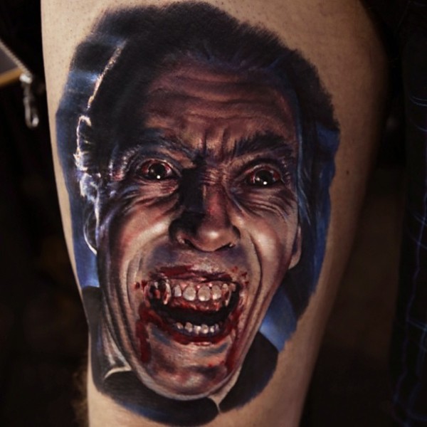 腿部彩色恐怖电影色德古拉吸血鬼纹身