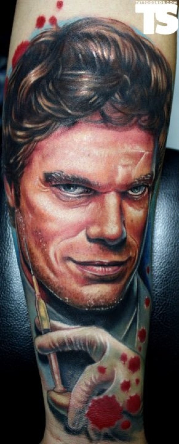 腿部逼真的德克斯特电影人物纹身