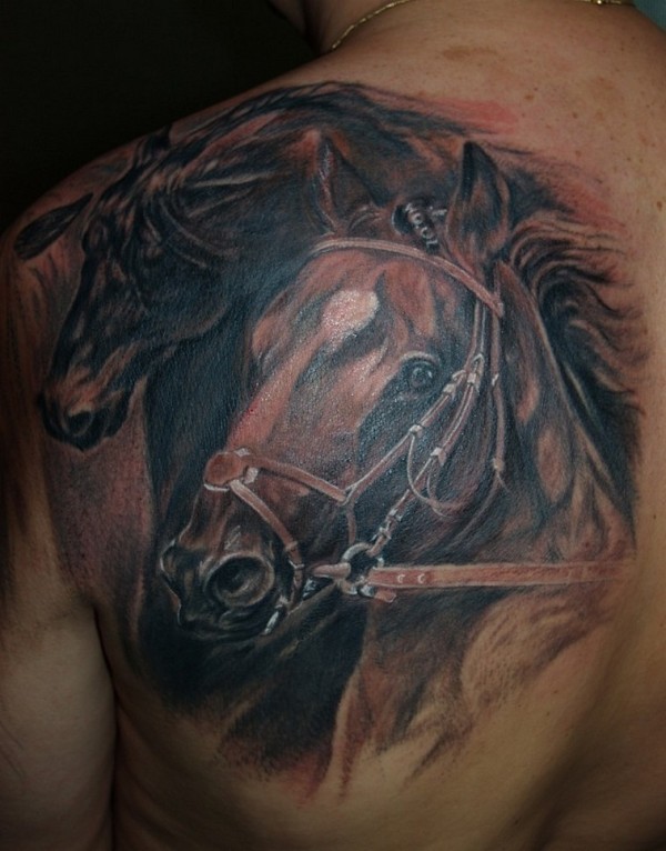 肩部棕色逼真的马纹身图案