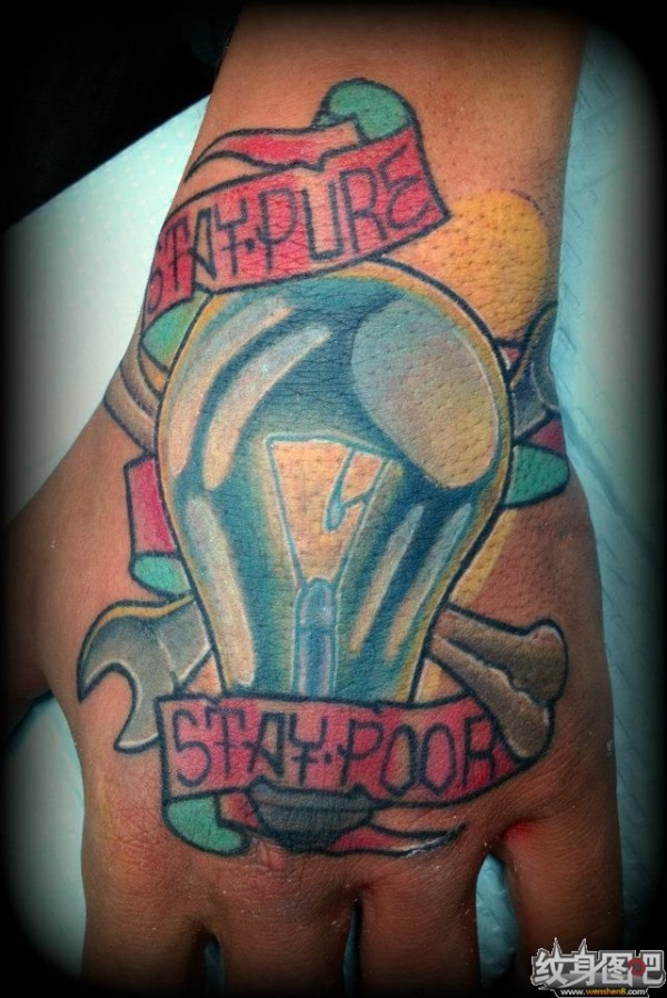 手背上的电灯泡纹身图案