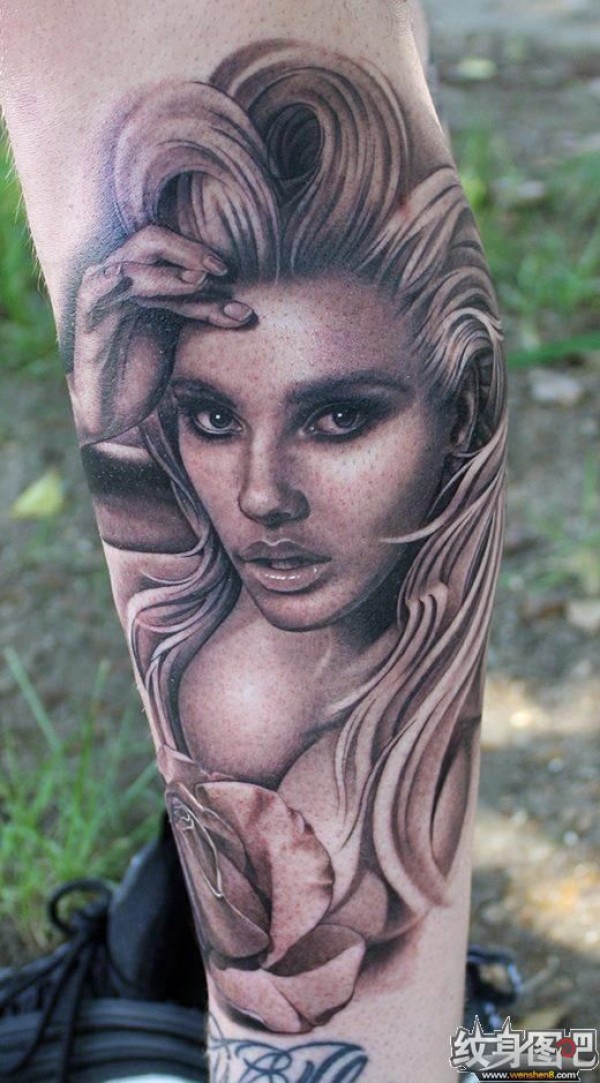 女生人物纹身图案 女生小腿上女生人物纹身图案