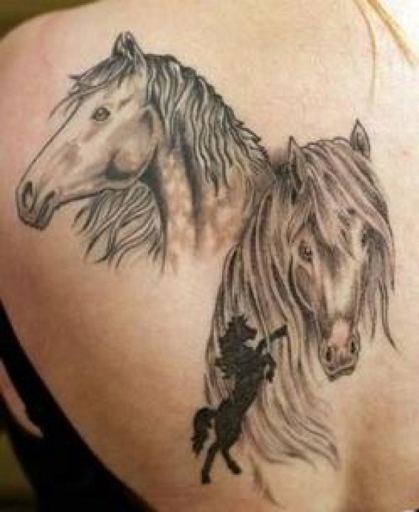 肩部灰色大马头纹身图案