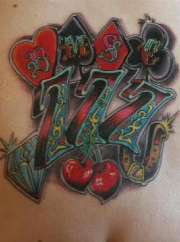腹部彩色数字与马蹄铁纹身图案