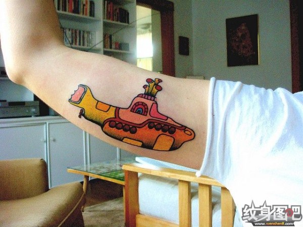大臂上金色的潜水器纹身图案