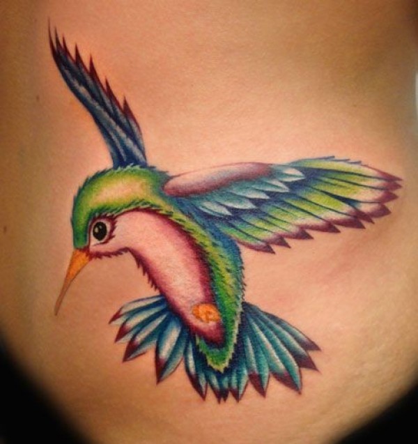 腰部漂亮的彩色蜂鸟纹身图片